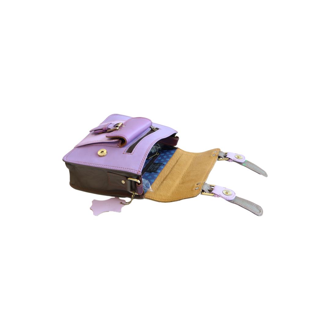 Extérieur : 1 poche à pression, 1 pochette zippée sous le rabat, 1 bandoulière