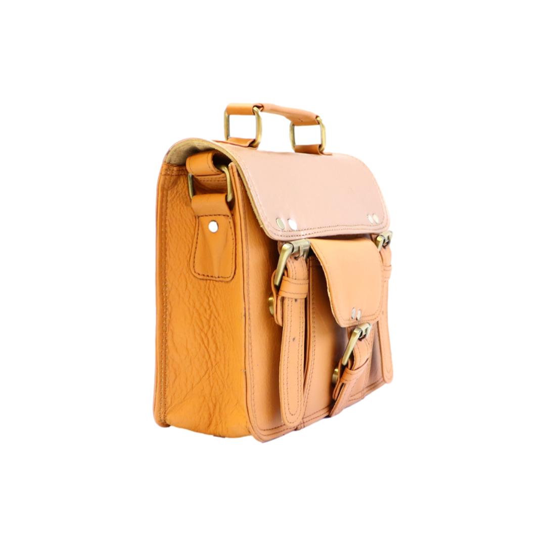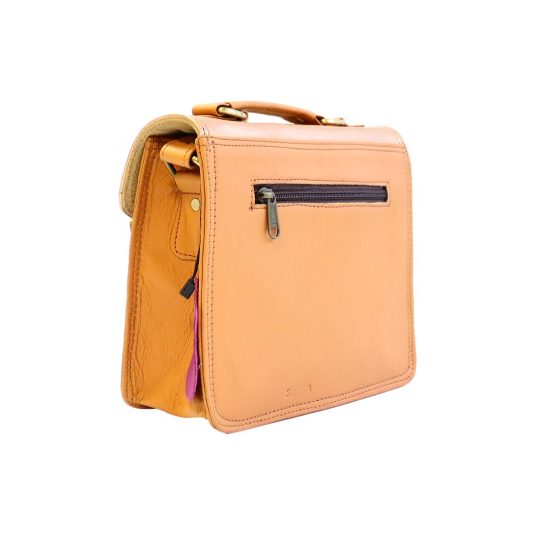 Découvrez le SANDRO FUNKI, un sac à main style cartable en cuir recyclé, magnifiquement confectionné à la main et unique par ses combinaisons de chutes de cuir. Parfait pour les citadines élégantes, il allie style, durabilité, et fonctionnalité avec une anse distinctive et une pochette avant, faisant de lui un choix éco-responsable et chic.