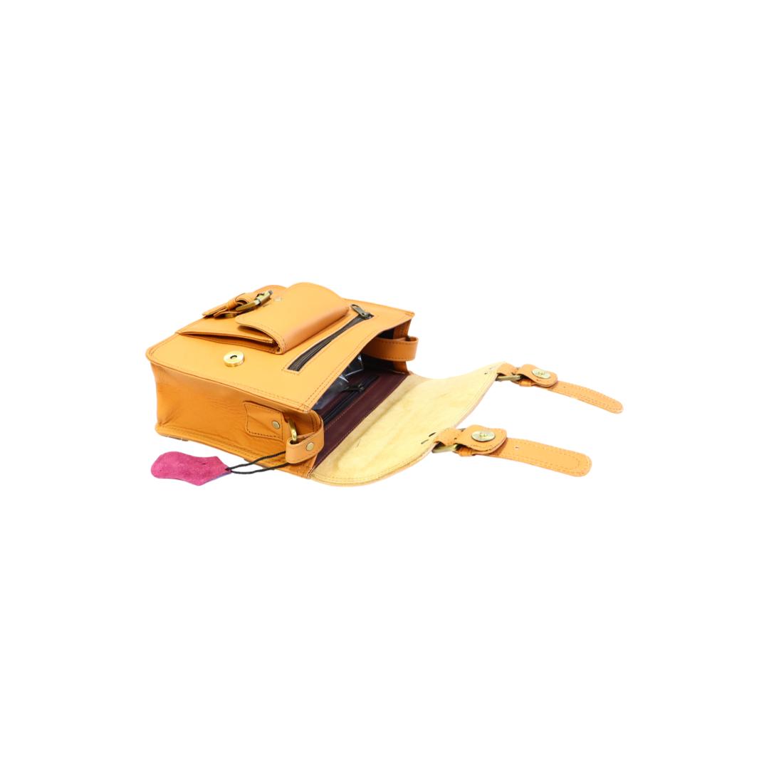 - Extérieur : 1 poche à pression, 1 pochette zippée sous le rabat, 1 bandoulière